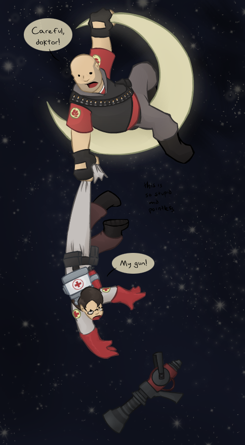 Team Fortress 2 - Heavy and Medic goofing around in space. Printed on super-glossy photo paper. The medigun itself is cut off - see second photo for more details.