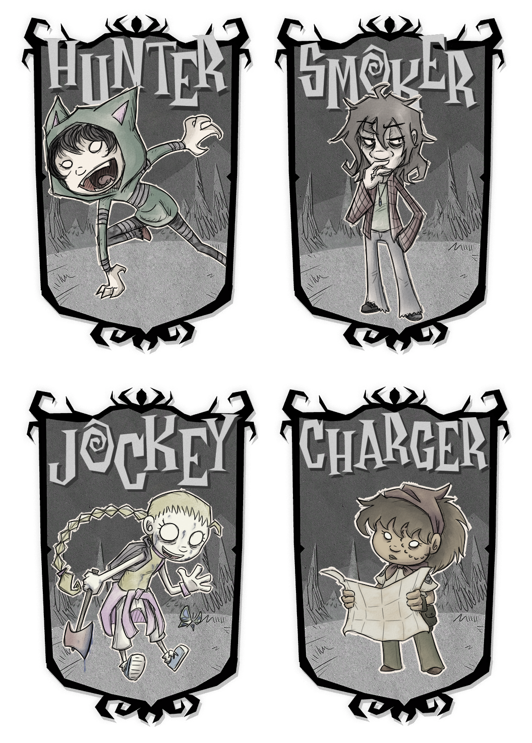 The zombie ladies in the Don't Starve style! You can pick which one you want specifically. Printed on glossy photo paper.