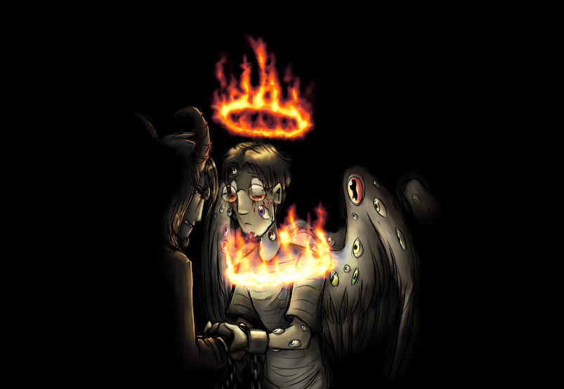 A demon only visible through the light cast by an angel. Printed on super glossy photo paper.