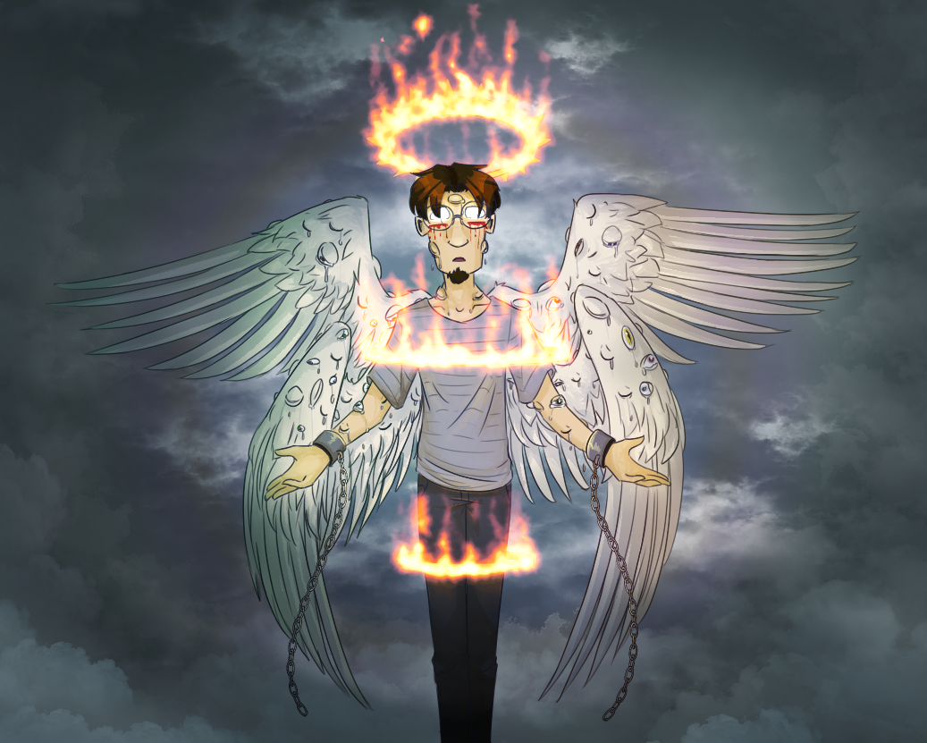 Edgar in his biblical angel form! Outwardly emotionless, but the eyes on his wings paint a different story. Printed on glossy photo paper.