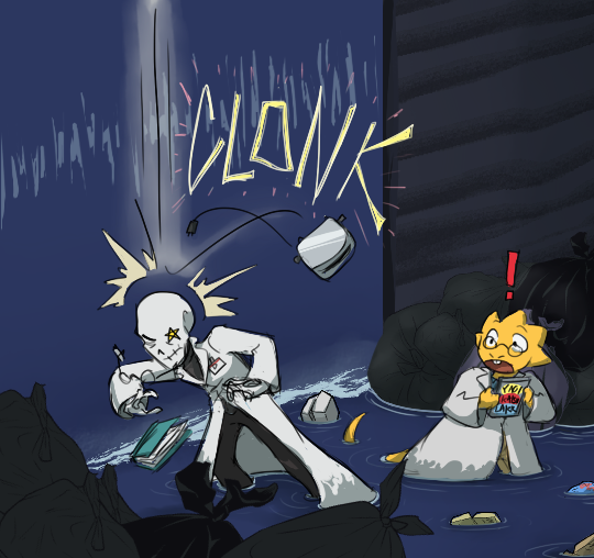 Don't stand under the waterfall when you're garbage hunting, Gaster! Printed on super glossy photo paper.